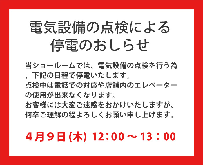 - 電気設備の点検による 停電のおしらせ